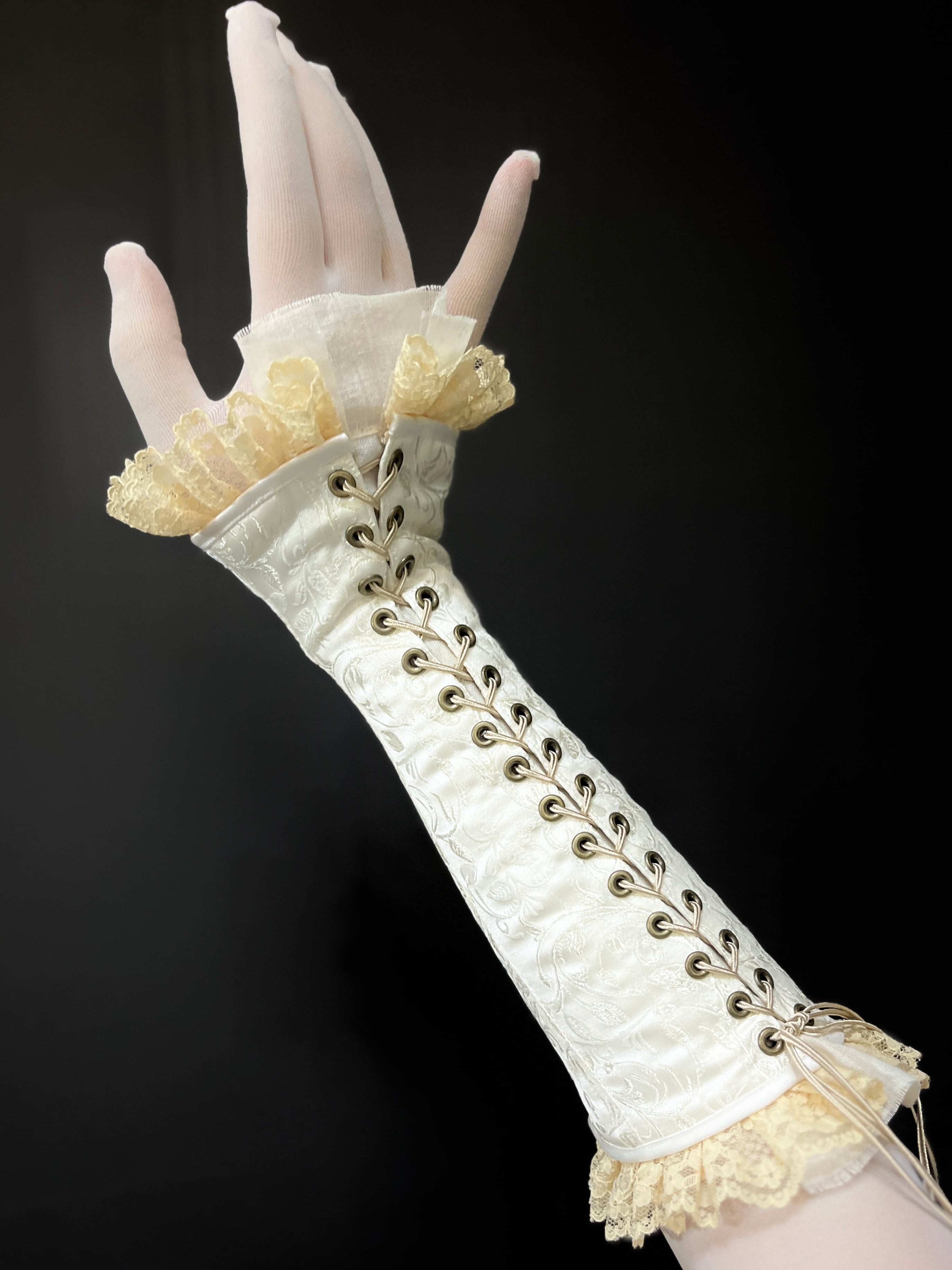 アームコルセット ジャカードサテン クリーム ・アンティークゴールド色ハトメ Arm Corset [Cream Jacquard satin and Antique Gold Eyelets]